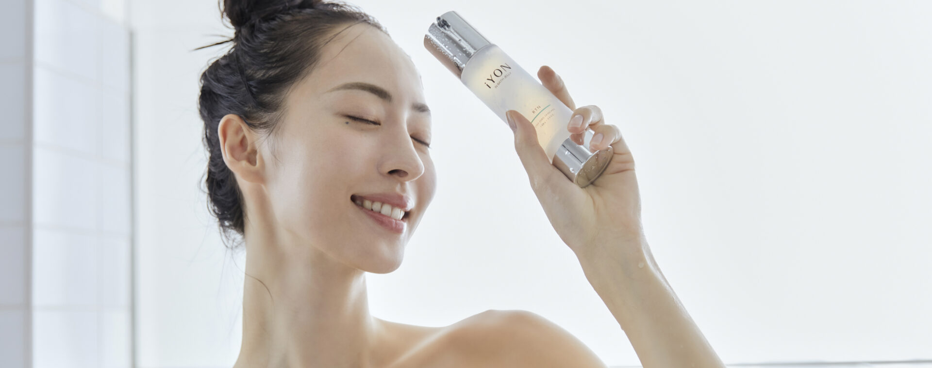 浴室で使うスキンケア インバス導入美容液【iYON】の商品イメージモデルとして
